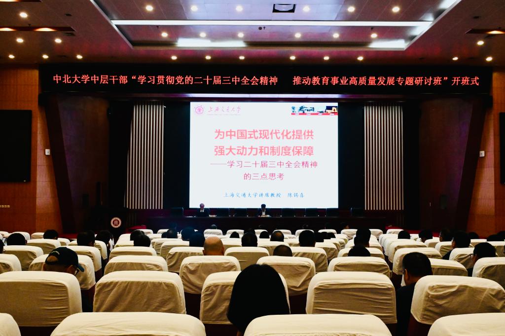 10月8日,专题研讨班开班式举行,上海交通大学教授、中央马克思主义理论研究和建设工程首席专家陈锡喜应邀来校做《为中国式现代化提供强大动力和制度保障——学习二十届三中全会精神的三点思考》专题辅导。