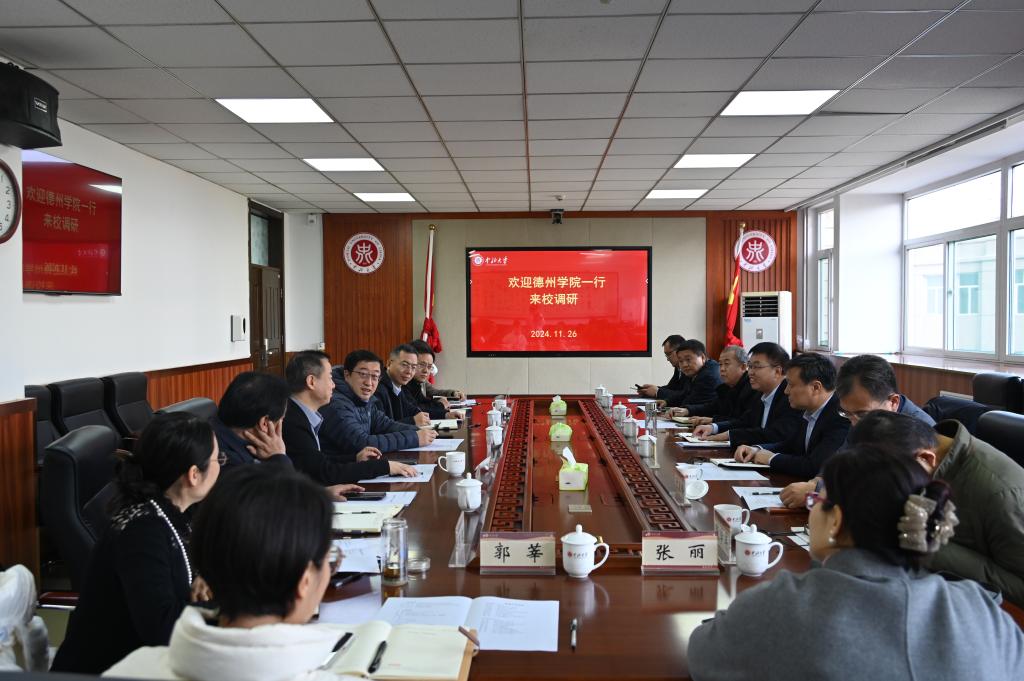 11月26日,德州学院党委副书记、校长赵长林一行来校调研交流。双方交流座谈会在德怀楼第四会议室召开。副校长刘俊出席。