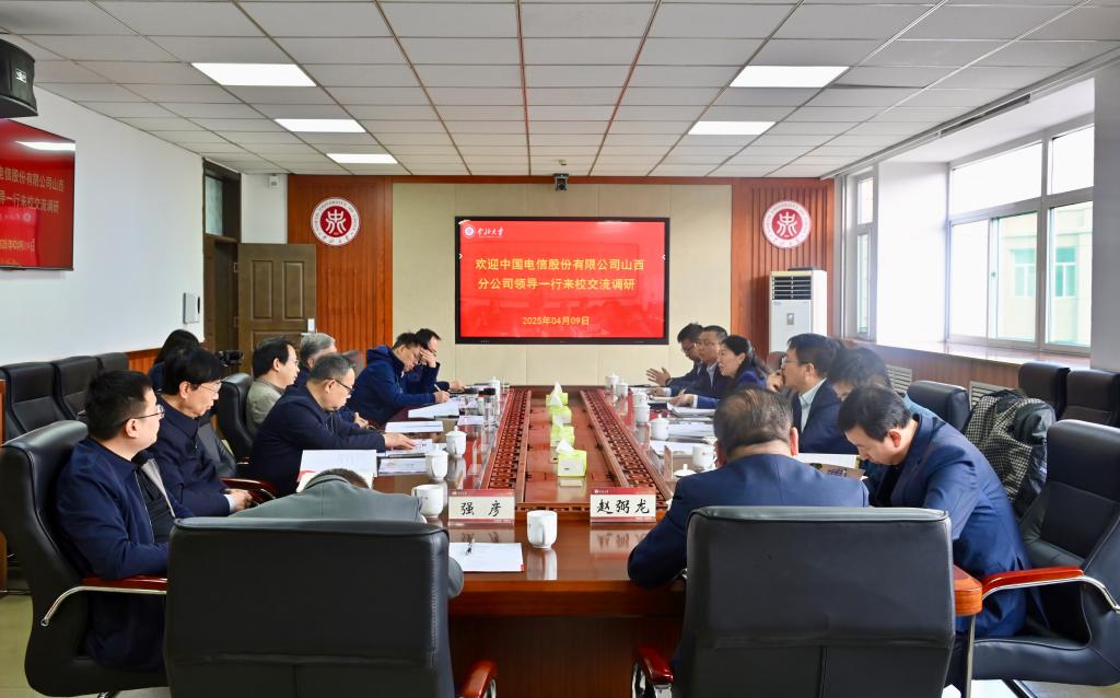 4月9日,中国电信股份有限公司山西分公司总经理赵洪勋一行来校调研交流,双方就深化产教融合、推进智慧校园建设等议题展开深度讨论。交流座谈会在德怀楼第四会议室召开。校党委书记张晓永出席。副校长赵贵哲主持会议。