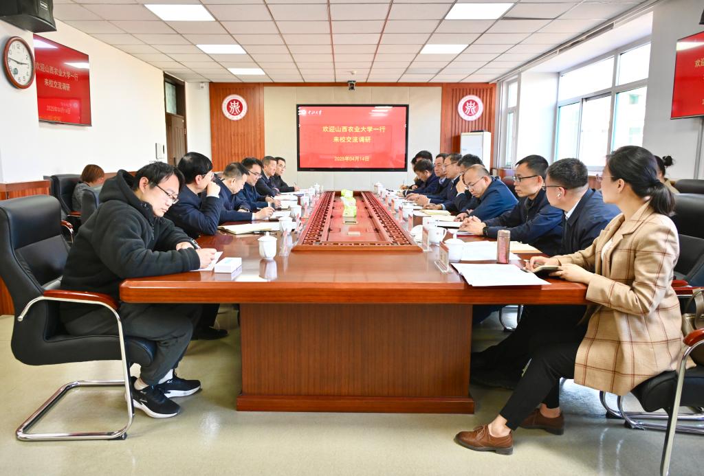 4月14日,山西农业大学党委副书记李卫祥带领宣传统战部、学生工作部、研究生院、校团委等分管部门负责人来校就相关工作进行调研。我校副校长尹建平出席双方座谈会。我校党委宣传部、学生工作部、校团委、招生与就业工作部、研究生院等相关单位负责人参加会议。