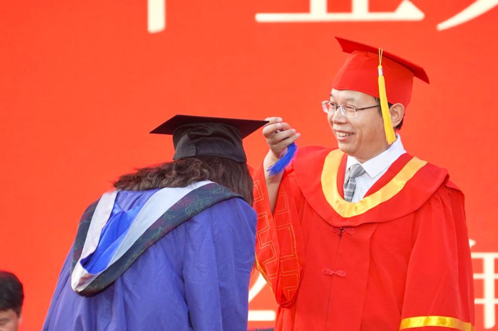 校友代表董志江发言回顾了在母校成长蜕变、职场上传承与突破的历程,希望全体毕业生在新征程中满怀初心使命、创新激情、奋斗热情,踏平坎坷成大道,一路豪歌向天涯,永远心怀梦想、心存感激、朝气蓬勃,在服务国家战略、增进民生福祉中定位人生坐标,书写属于自己的辉煌篇章。