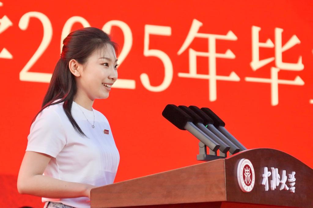 教师代表、全国辅导员年度人物魏春燕寄语毕业生,以只争朝夕的心态踏实走完未来长路,在成长路上目有山川、胸有丘壑、心有明灯,守护好激情与初心,将小我融入大我,走在时代前列。