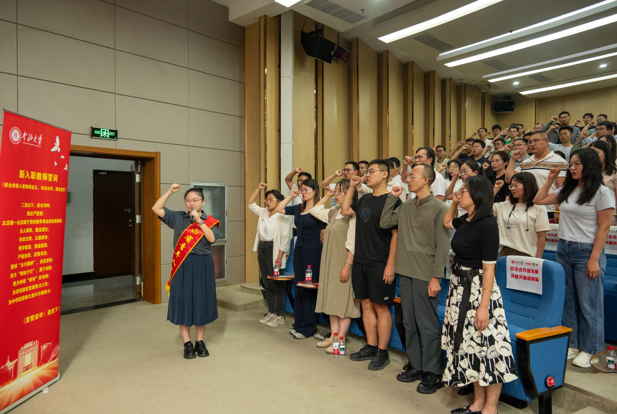 我校百余名新入职教师庄严宣誓,环境与安全工程学院教师黄鹊领誓。