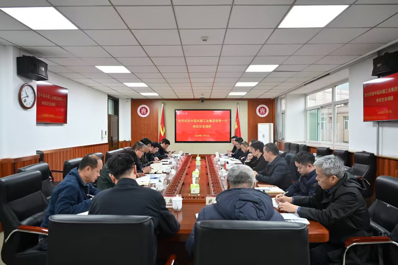 11 月 7 日,中国兵器工业集团人力资源部人才处处长朱超带队,携中国北方化学研究院集团(245厂)、晋西工业集团相关负责同志来校调研交流。座谈会在德怀楼第四会议室召开。副校长来志斌出席。我校研究生院、继续教育学院、科学技术研究院、机电工程学院、机械工程学院、环境与安全工程学院等相关单位负责人参加座谈。