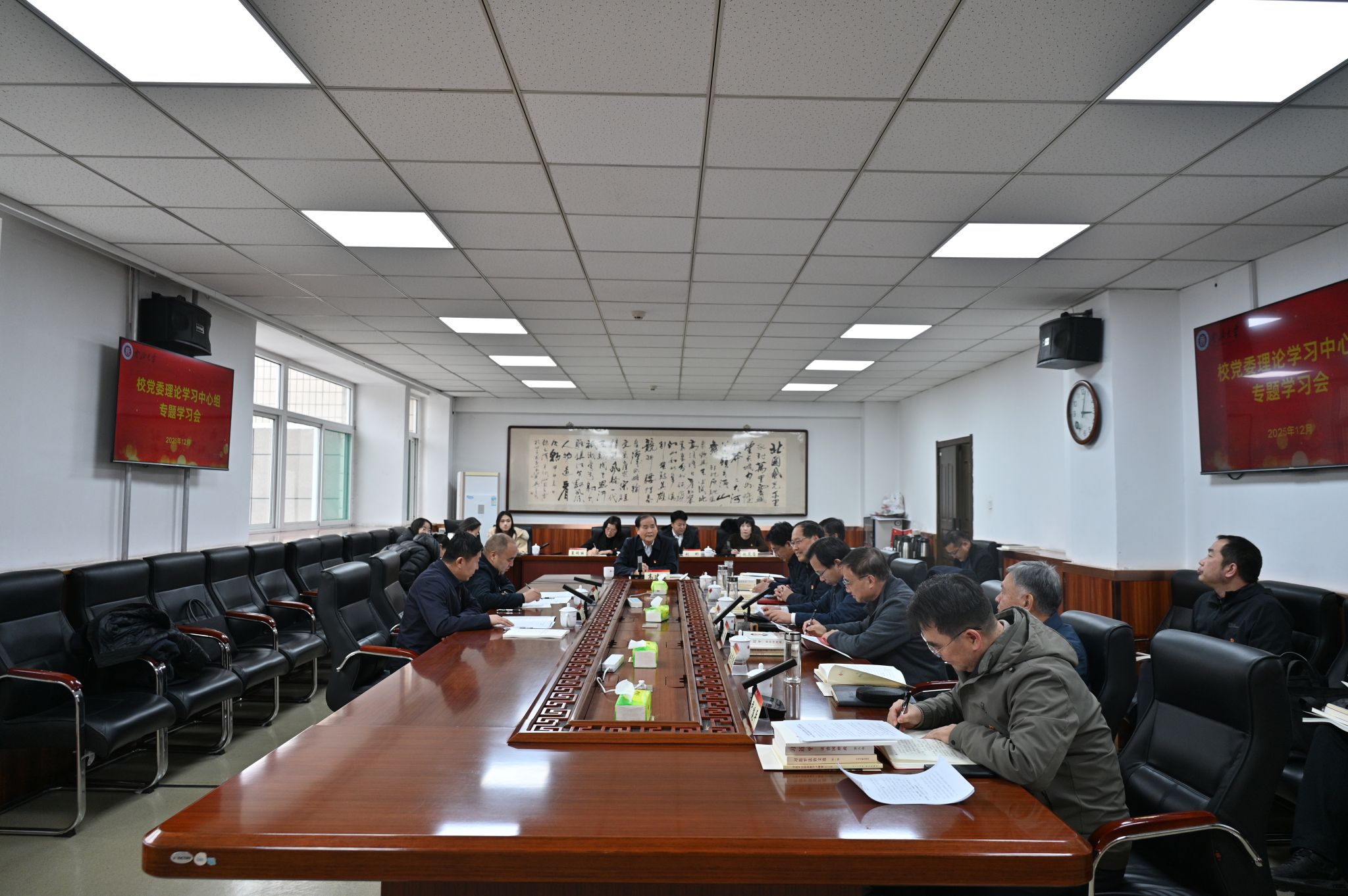 12月12日下午,我校召开党委理论学习中心组专题学习会,深入学习党的二十届四中全会精神、习近平总书记在中共中央政治局第二十三次集体学习时的重要讲话精神、《习近平谈治国理政》第五卷以及《中国共产党思想政治工作条例》。省委教育工委理论学习中心组列席旁听工作组组长、山西师范大学党委副书记王志强,山西师范大学党委常委、宣传部部长石斌来校列席旁听并指导工作。会议特邀省科学社会主义学会会长、省委党校原副校长高建生教授作专题辅导,校党委理论学习中心组成员全体参加,校党委书记张晓永主持会议。