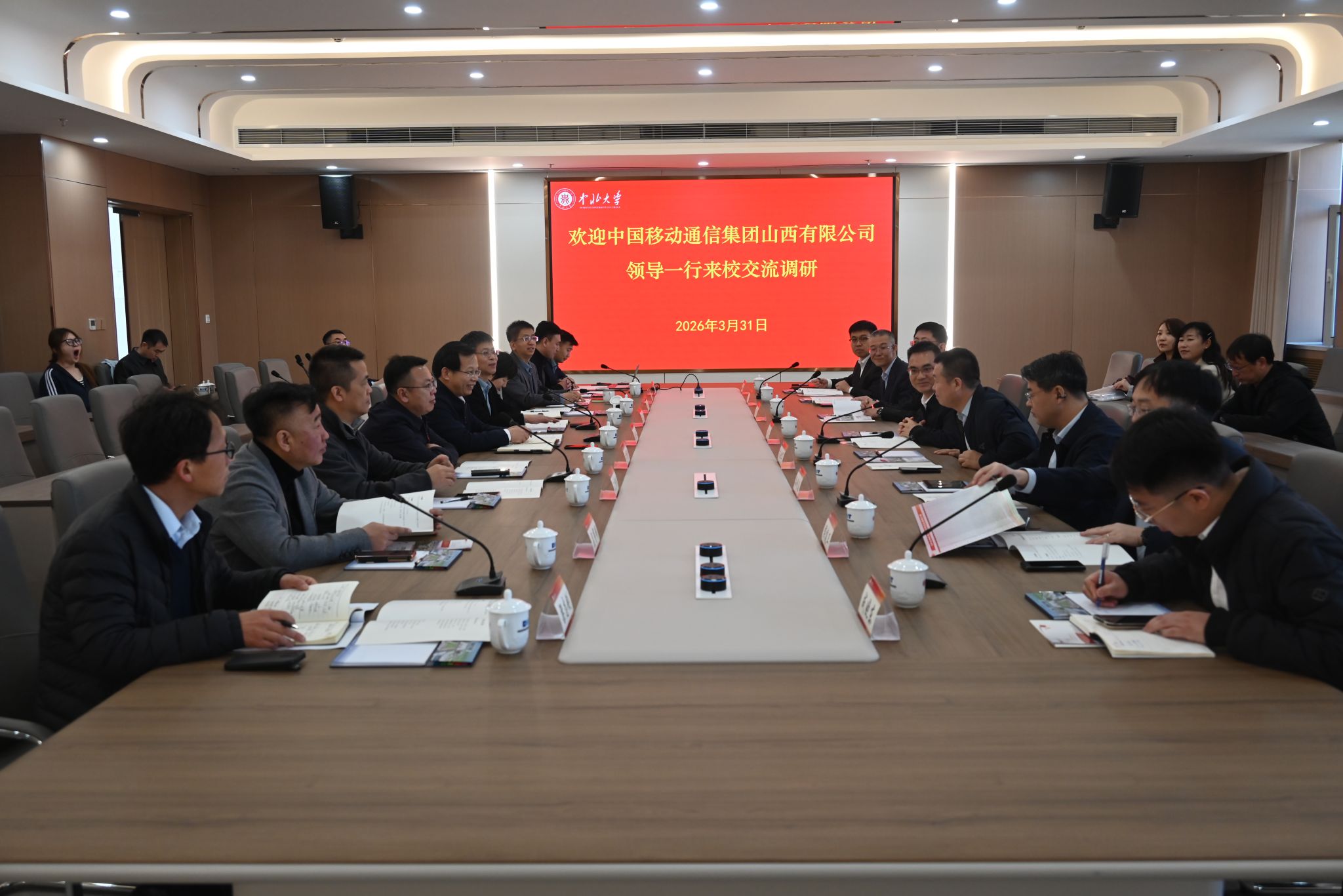 3月31日,中国移动通信集团山西有限公司党委书记、董事长、总经理廖建一行来校调研,深化校企对接、共商协同发展。校党委书记张晓永、副校长杨风暴出席座谈会,双方相关部门负责人参会。杨风暴主持座谈会。