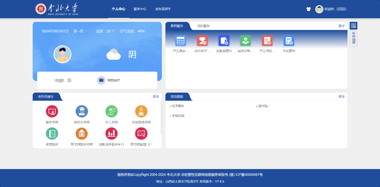 一、系统登录方式:登录新信息门户系统(地址:https://zhmh.nuc.edu.cn,用户名密码为原数字化校园系统用户名和密码,如果是校外登录系统,点击中北大学首页数字校园,通过企业微信登录),登录界面如下图:
