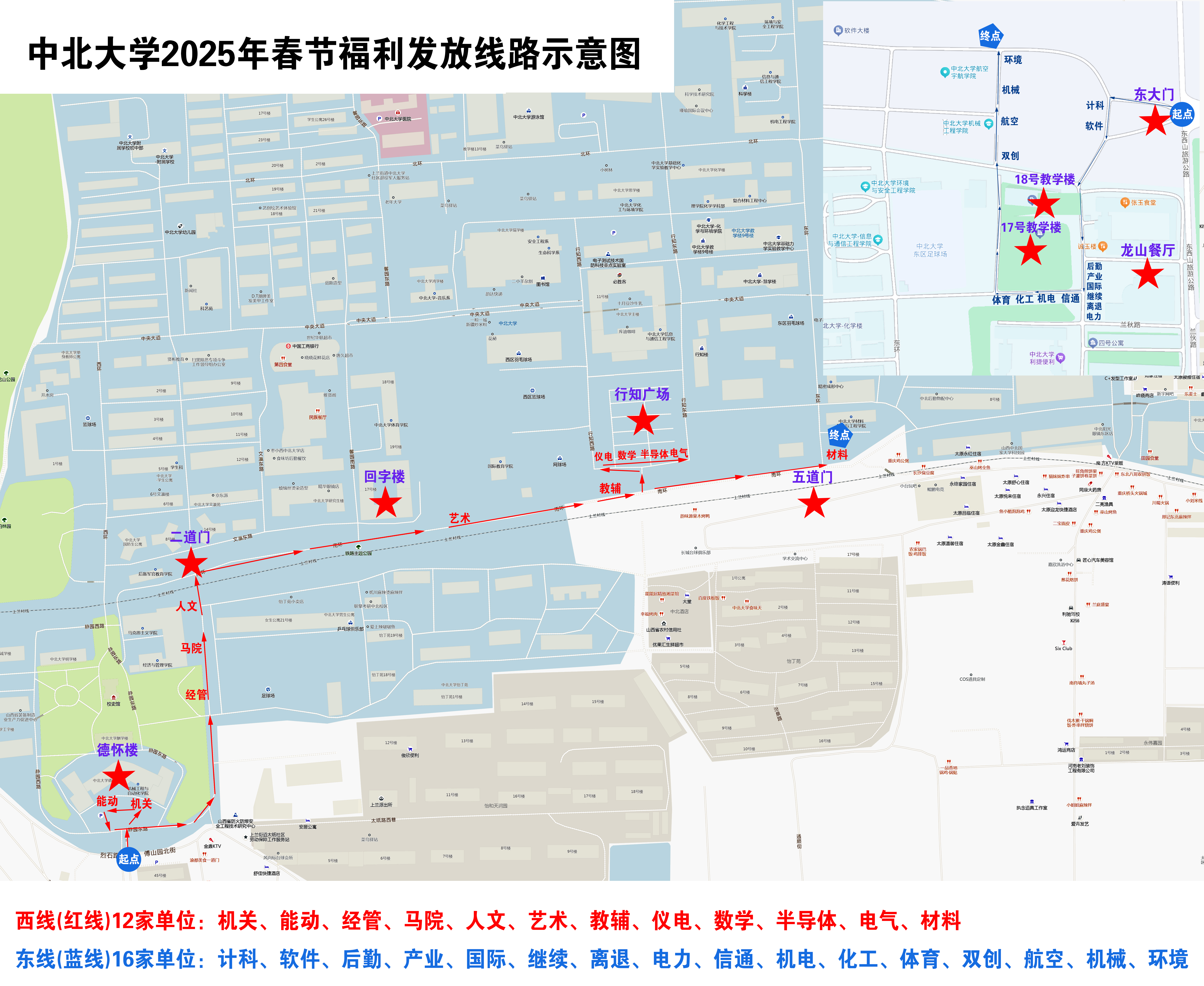 二、发放路线及各单位领取地点