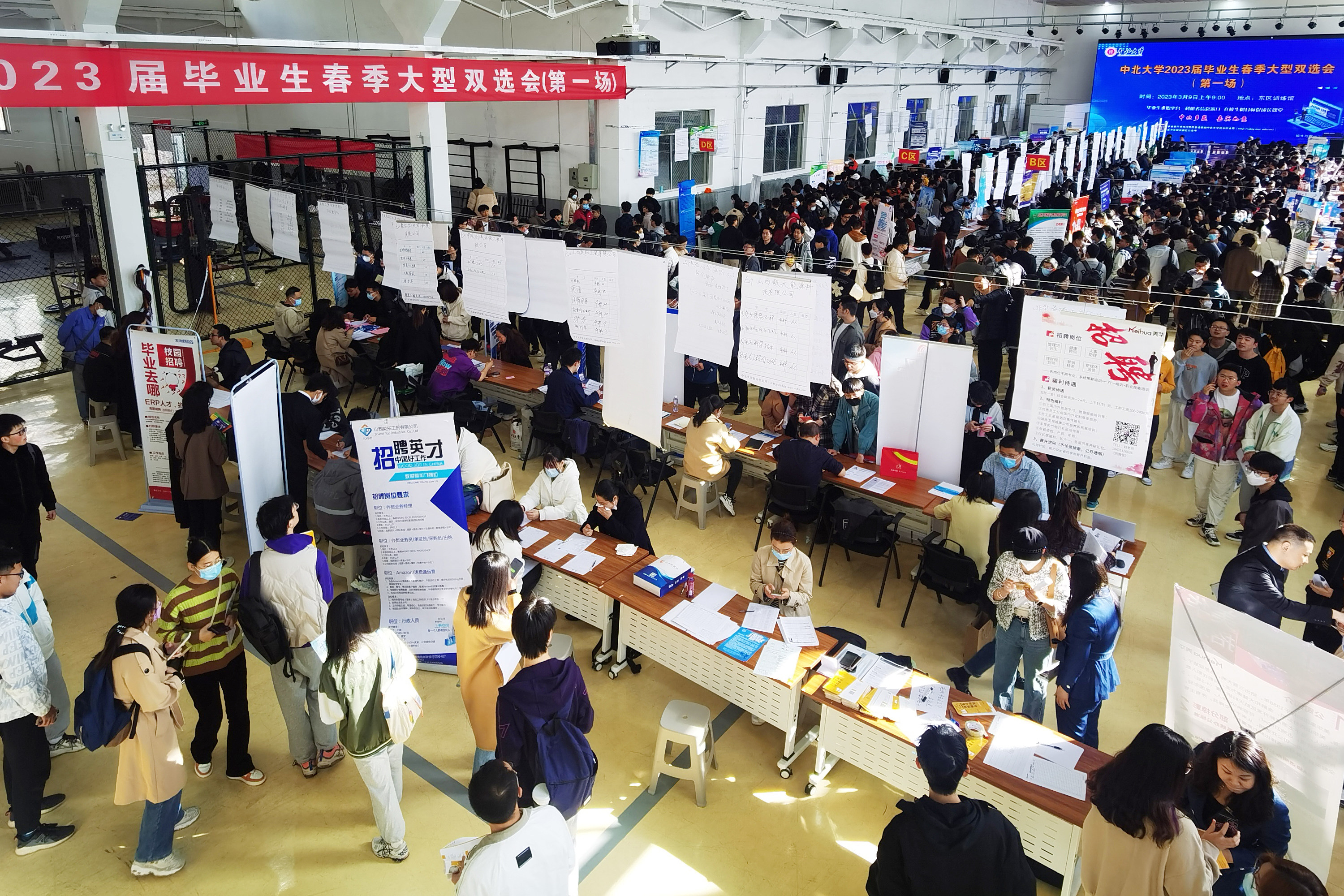 3月9日,作为中北大学“春季促就业攻坚行动”之一的2023届毕业生春季首场大型双选会在学校东区训练馆内隆重举行。来自全国21个省市自治区的88家用人单位莅临会场选聘英才,共提供岗位需求6266个,招聘单位涉及到新能源、制造、软件、信息、教育、电力、文化、建筑、体育等多个行业。双选会吸引了近2100名毕业生前来应聘,众多非毕业班同学也到招聘会现场,提前感受求职气氛,了解市场需求。据了解,这也是山西省内高校2023年春季召开的首场大型双选会。