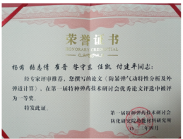 会上,陆军工程大学、武警工程大学、北京理工大学、南京理工大学、中北大学、中国兵器特种弹药研究院等单位作了9个主题报告和7个专题报告,分享了特种弹药领域的最近研究进展和成果。我校的付建平副教授作了“多域融合作战模式下新型特种弹药及战斗部毁伤技术研究进展”的主题报告,获得了与会代表的好评;杨芮博士作了“防暴弹气动特性分析及外弹道计算”专题报告,并获得了优秀论文一等奖。