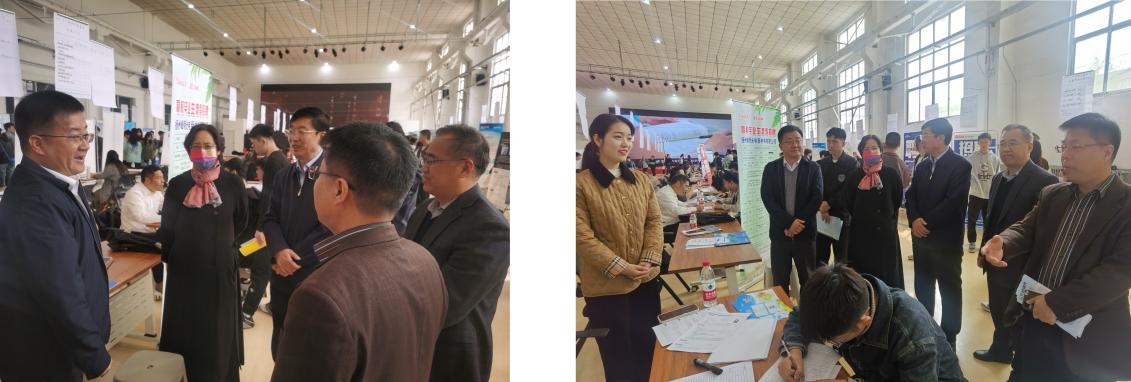 在招聘会现场,校院领导对各家企业的招聘情况、薪资待遇、学生未来发展做了充分地了解。同时也与参加招聘的学子进行沟通,询问就业准备、就业打算及预期,并给现场同学提出了实用的就业建议。
