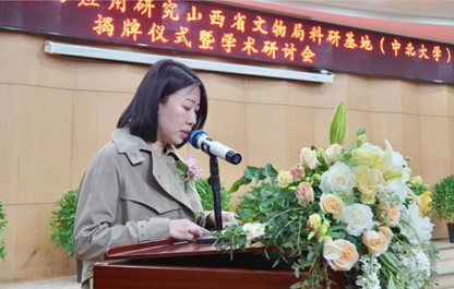 仪式上,省文物局文物科技处处长张晶晶宣读了《山西省文物局关于公布2023年省级文物科研基地认定名单的通知 》,省文物局党组成员、副局长白雪冰,中北大学副校长赵贵哲先后致辞,双方领导共同为“音乐文物艺术传播与应用研究山西省文物局科研基地(中北大学)”揭牌并为科研基地主任颁发了聘书。“音乐文物艺术传播与应用研究”山西省文物局科研基地(中北大学)主任王燕平教授做了表态发言。