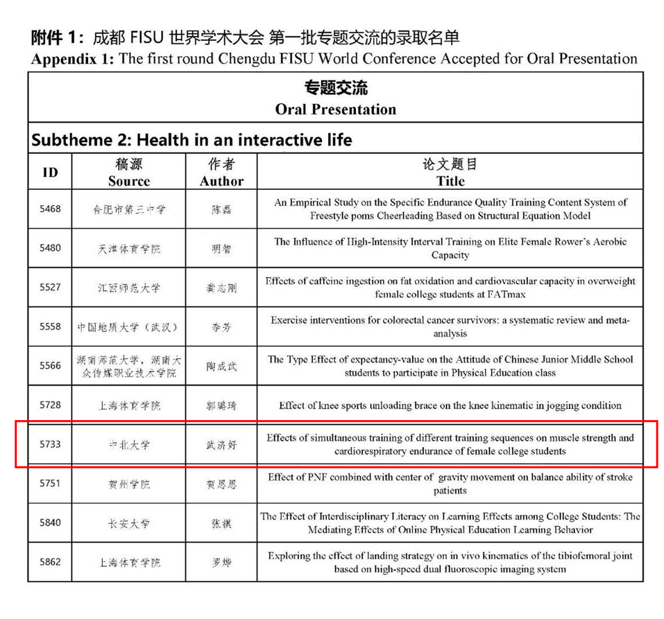体育学院武济好同学论文被成都FISU世界学术大会收录