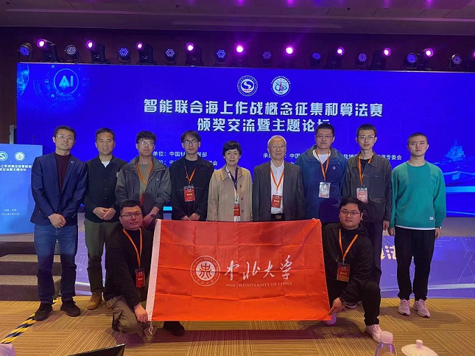 本次比赛,主要由中北大学机电工程学院学生组成的四支队伍进入决赛,其中“中北&航测联队”荣获算法赛一等奖并入选优秀算法奖,“人民兵工队2”和“人民兵工队3”分别获得算法赛三等奖,“典型作战运用场景下的海上及登陆作战概念想定”获得优秀论文二等奖。机电工程学院研究生王国岩、本科生闫凯代表学校分别做了算法设计和作战概念的主题报告。