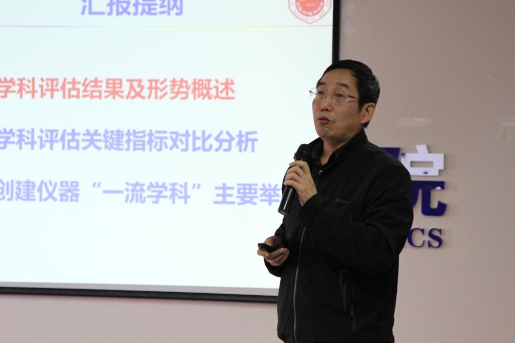 仪器与电子学院院长刘文怡首先从第五轮学科评估结果及形势描述、学科评估关键指标与A类院校对比分析以及“一流学科”建设的主要举措三方面进行了汇报,汇报立足详细、客观的数据分析,梳理出新一轮学科评估周期中,存在的短板指标项和可提升指标项,并针对性地提出了切实可行的具体举措。刘文怡院长强调学科下一步发展的总体目标是:立足学科现状和特色,以新一轮学科评估和“一流学科”建设目标为导向,在2025年底前确保优势指标稳中有升,弱势指标补足不齐,所有指标不留空白。