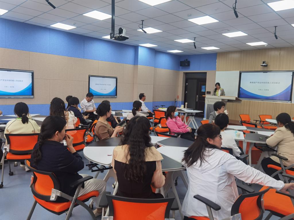 2023年5月23日下午17点30分,由创新创业学院和教学信息化研究虚拟教研室在工程训练中心A215智慧教室举办了2023年第八期教学沙龙,陆青梅副教授做了题为“教育部产学合作协同育人项目解读”的报告,教学沙龙通过虚拟教研室、腾讯会议与现场互动的方式进行,线上线下30余人参加。