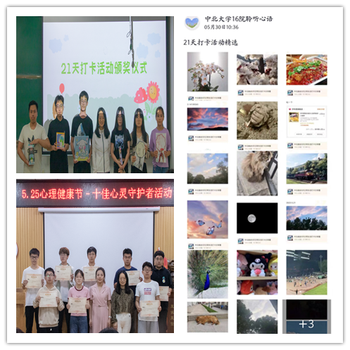 同时,学院积极组织学生参与学校活动,承办我爱我心理游园会之“坚持”活动;22160403班心理委员吴雨林同学获得我校2023学年“十佳心灵守护天使”称号;聆听心语心理辅导站成员排练的心理情景剧《标签》获得“剧暖心·伴我行·心故事”校园心理情景剧三等奖。