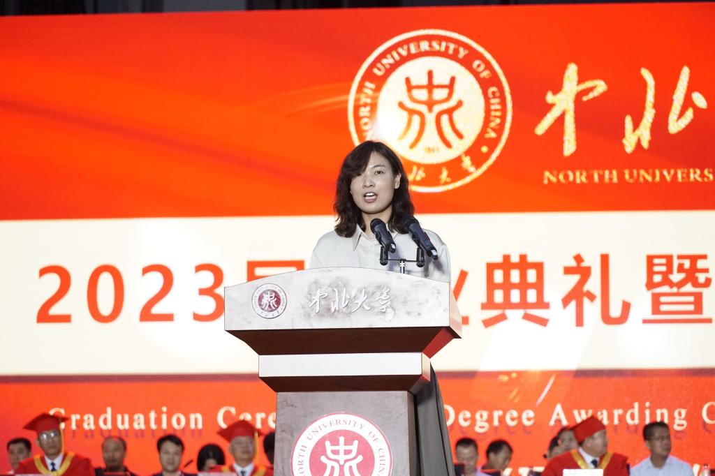 明朝即长路,惜取此时心。母校的一草一木、一砖一瓦,铸造着中北大学的风骨,更是学子们奋进前行的动力源泉。仪器与电子学院博士毕业生宋金沙、马克思主义学院硕士毕业生李笑然、经济与管理学院本科毕业生石树恒人文社会科学学院本科毕业生张田代表所有毕业生深情回顾了自己在中北求学的付出与收获,表达了对母校的不舍与感谢、对未来的无限憧憬、对学弟学妹、师长和母校最衷心的祝福。“不驰于空想,不骛于虚声”,博士在校生代表付迎泽、硕士在校生代表王睿晶、本科在校生代表贾兰心和万邦宸发言这样要求自己,同时表达了对学长学姐的依依不舍和祝福。