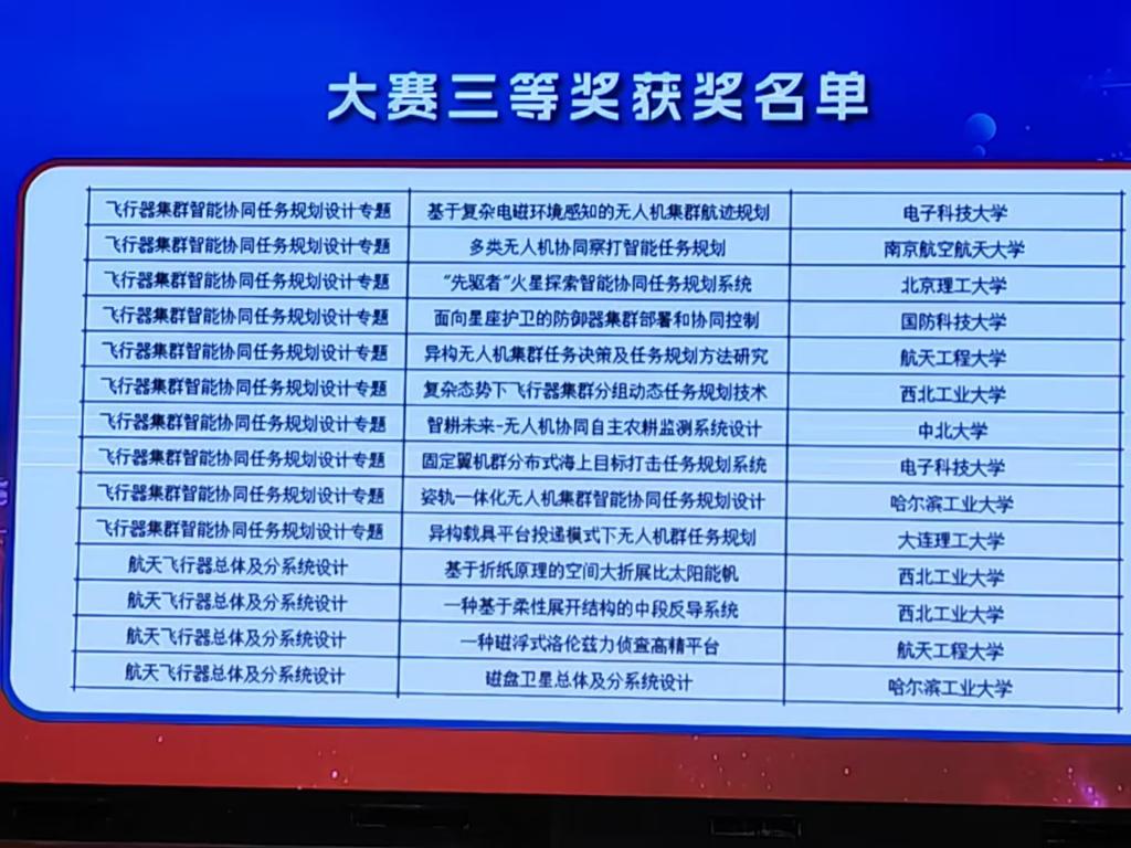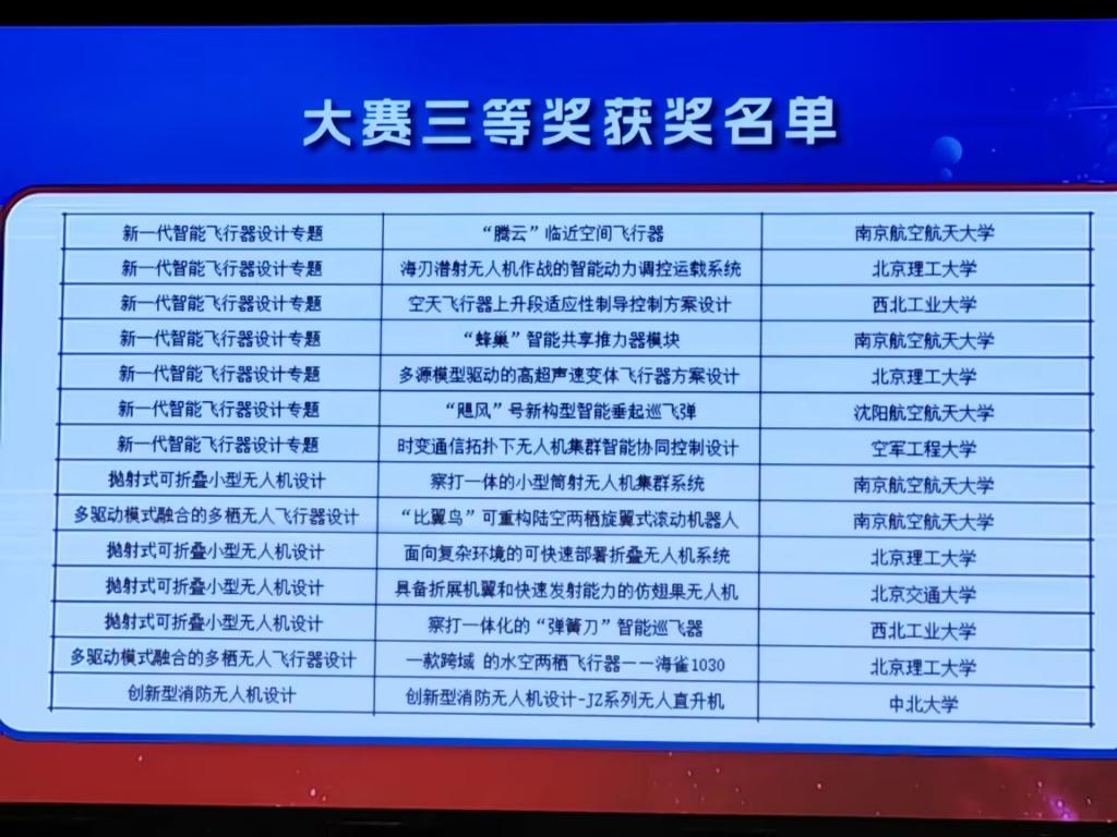 2023年8月20日至24日,“新动航空杯”第九届中国研究生未来飞行器创新大赛决赛在沈阳航空航天大学举办。我校由李京阳教授指导,高舒煜、海日汗、韩雨桐、徐震翰、赵荣珍等研究生完成的“创新型消防无人机设计-JZ系列无人直升机”项目团队、由邵星灵教授指导,朱璟、刘洪城、张飞智等研究生完成的“智耕未来-无人机协同自主农耕监测系统设计”项目团队,在大赛中表现优异,均荣获大赛三等奖,中北大学成为了山西省唯一进入决赛并获奖的高校,同时我校也获得“优秀组织奖”。