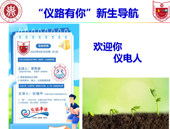 班级导航员同心助力新生班级:班级导航员是有志于在班级工作、学习、实践等方面为新生班级做导引的本科生高年级同学。他们是志愿者,无私为新生做入学前的各项服务工作;他们是宣传员,用对中北大学和仪器与电子学院的热爱做宣传和代言。在培训会上,辅导员对导航员作要求、明责任,教育者要先受教育,导航员们的责任心和使命感得到升华。