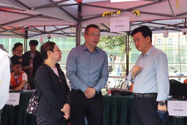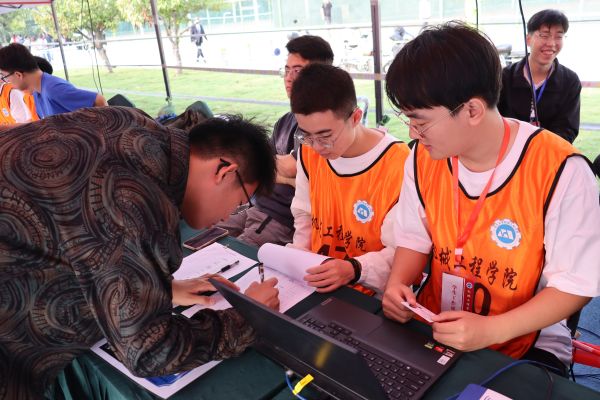 在学院新生报到点,参与注册登记工作的学生干部有条不紊地为新生办理入学手续,由学生党员队伍组成的志愿者队伍,引导员带领每一位前往公寓楼下完成住宿登记,同时现场机动组工作人员为新生家长介绍着学校、学院的相关情况。整个流程分工周密,严谨高效。