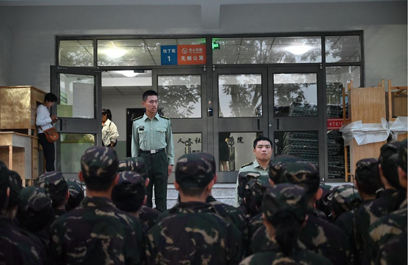 以军训之名,赴青春之约。9月15日下午六点半,人文社会科学学院在怡丁苑西门进行2023级新生军训教官见面会,为新生即将进行的军训做准备。