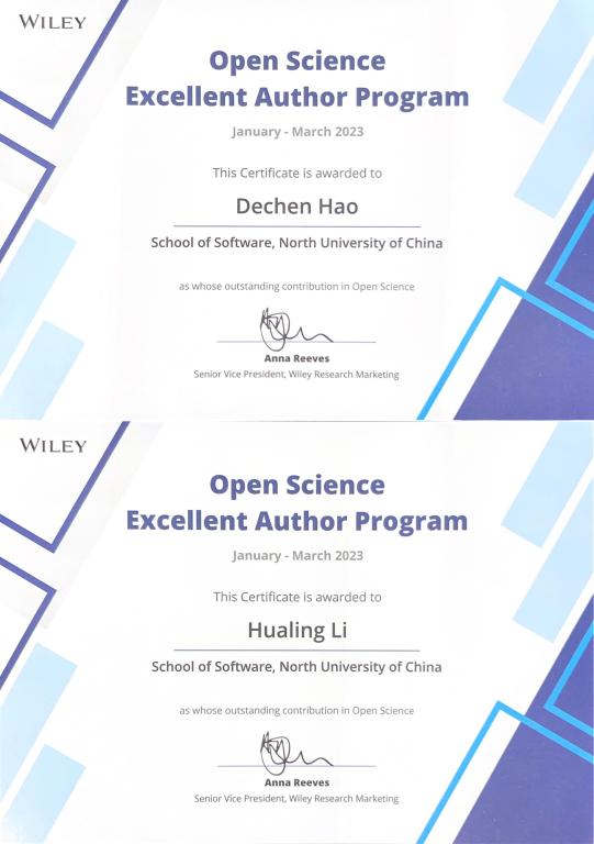 祝贺!软件学院研究生郝德琛和导师李华玲获评2023年第一季度Wiley中国开放科学高贡献作者