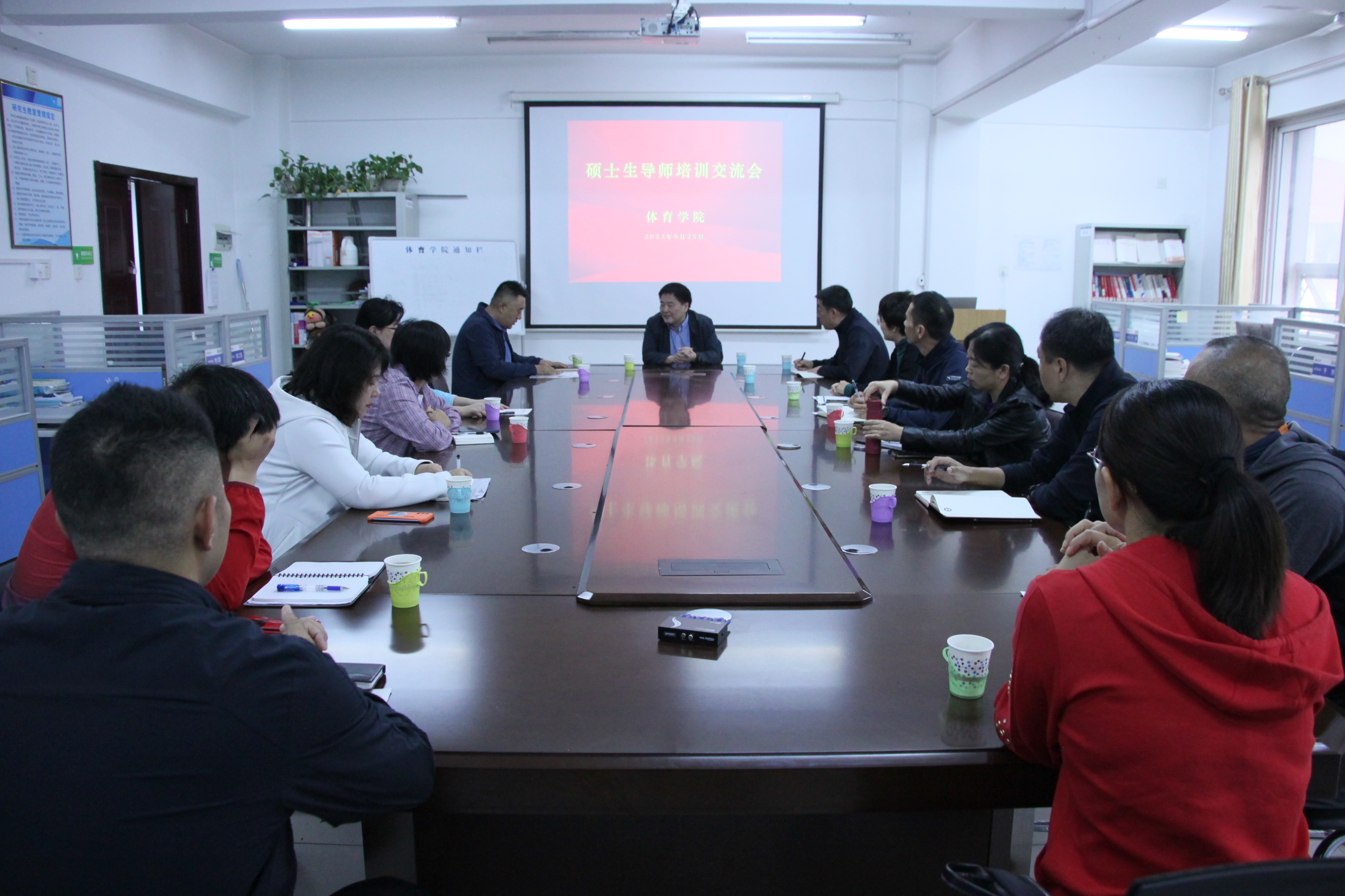 25日上午,体育学院在院楼研究生教室举办了硕士生导师培训会。培训会特邀华中师范大学博士生导师王健教授主讲。会议由王晓刚副院长主持,院长吴剑及全体硕士生导师参加。