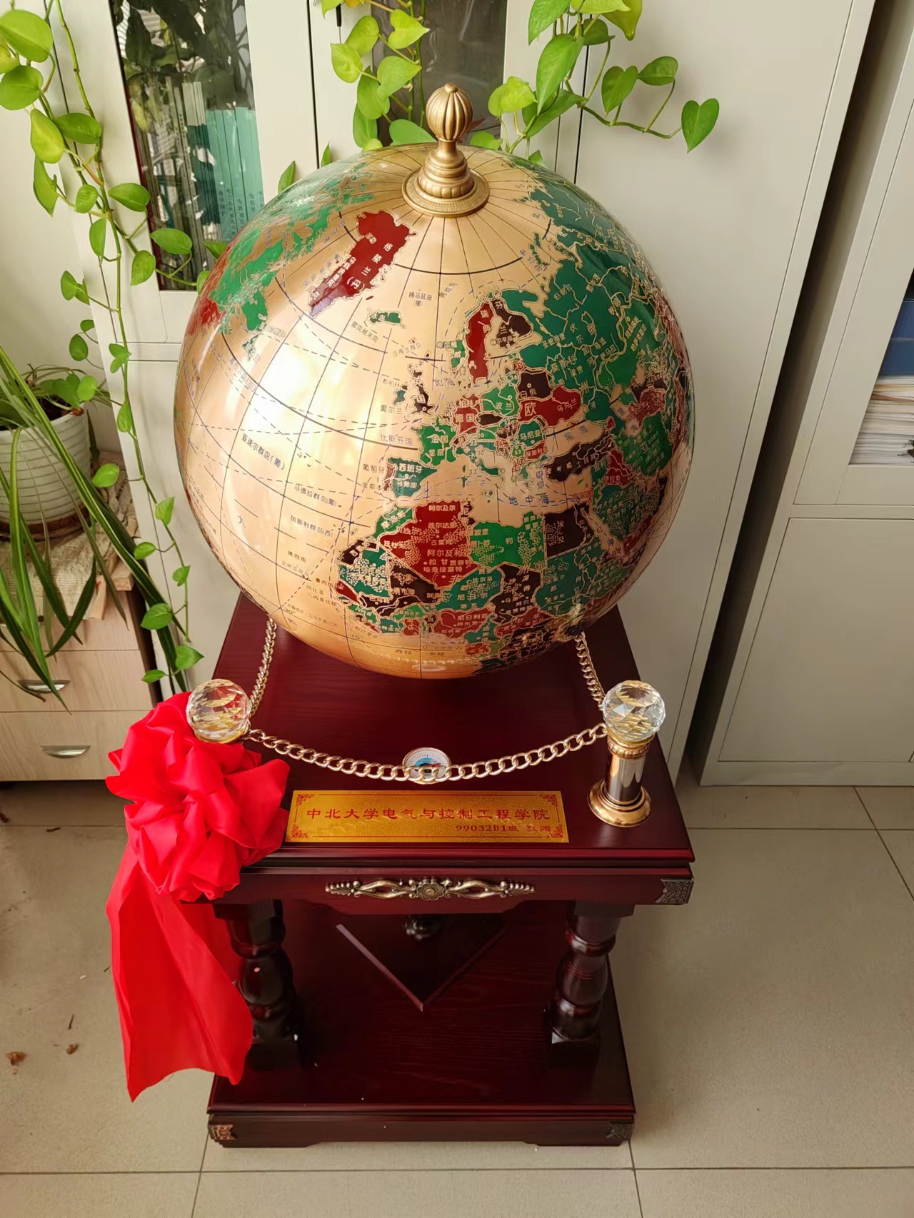 99032B1班回母校共叙毕业20周年情谊并捐赠纯铜地球仪