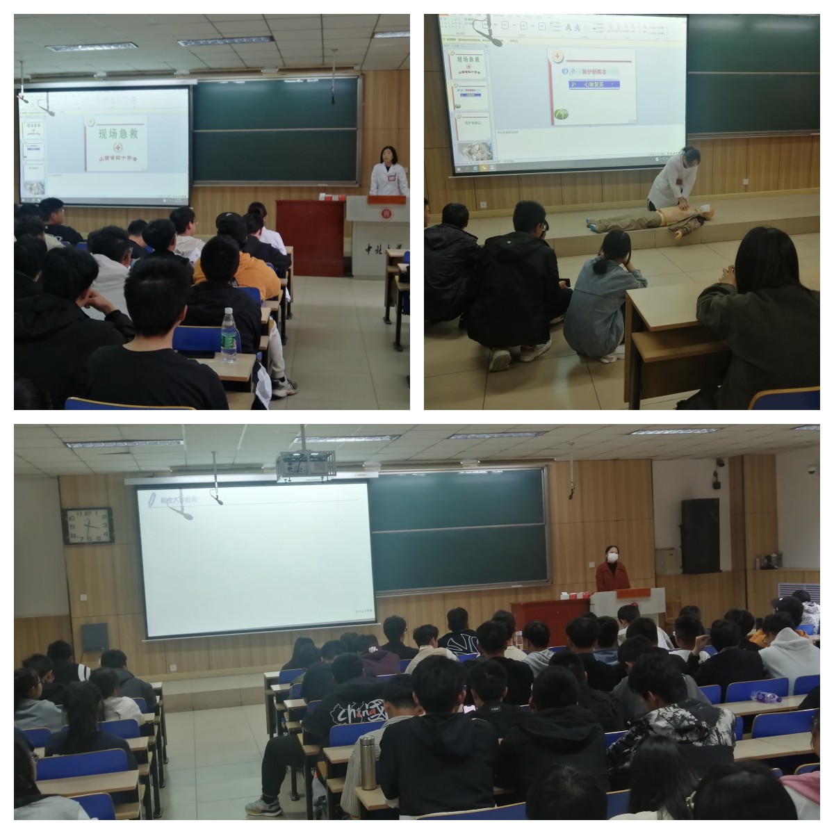 第三讲:急救、传染病知识讲座。讲座由校医院程巧瑞医生讲解,程医生从心肺复苏的操作流程到传染病的防治,平时个人卫生习惯的养成等方面,为我们普及急救、传染病的预防知识,使同学们增加了健康卫生知识,提高防范传染病的意识和能力;现场演示讲解心肺复苏,手把手互动教学,提升了同学们的急救常识和自救本领。