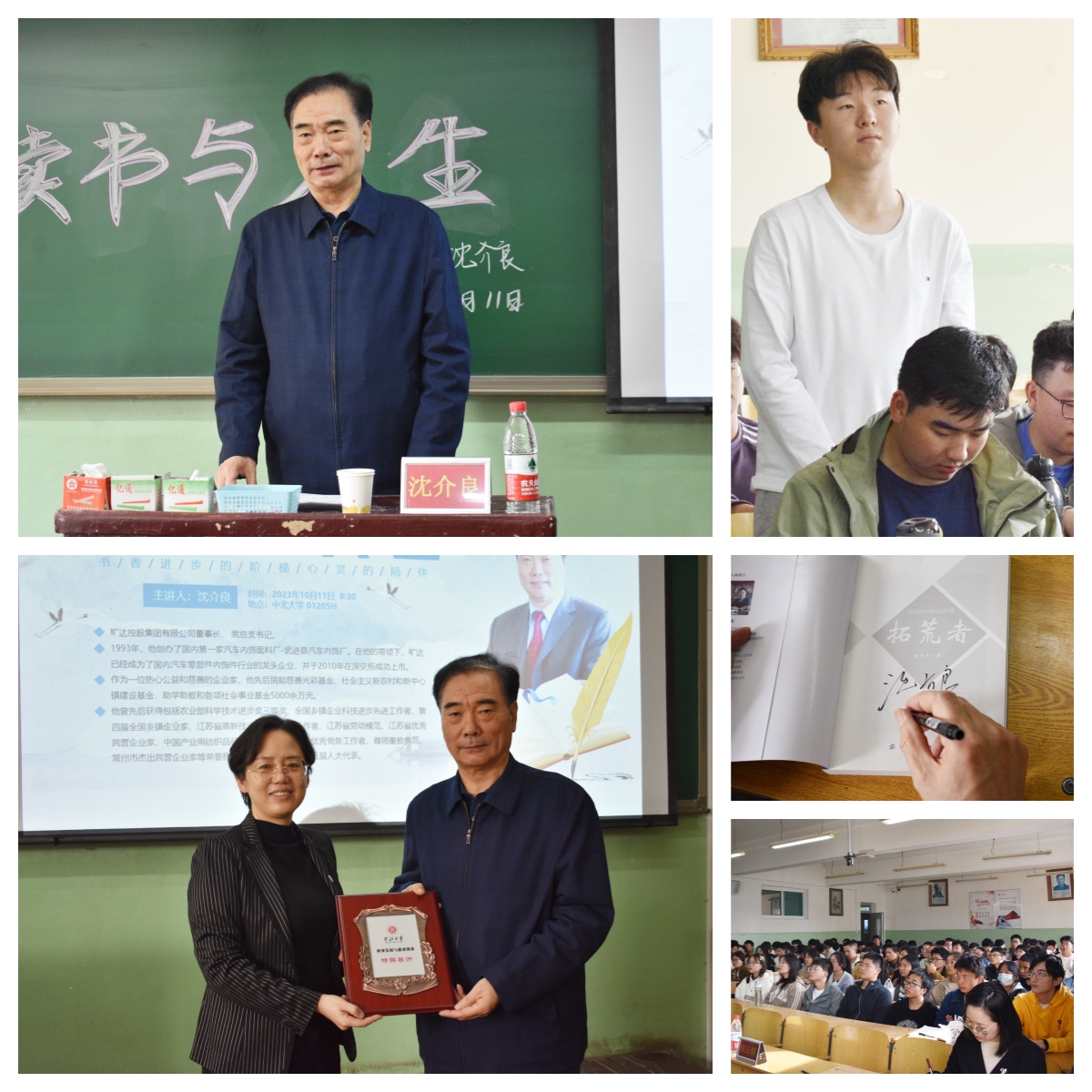 在互动环节中,针对同学们提出的“注重过程还是注重结果”,“始终坚持还是适时放弃”,“失败和成功哪个更重要”等富有辩证意义的问题,沈董先生结合自己的创业小故事,生动形象地为同学们解惑。活动结束时,沈先生向参与互动的学生赠送亲笔签名的图书《拓荒者》,意在鼓励学生多读书,积累知识,积累思想,积蓄力量。本次活动在同学们的掌声中圆满落幕。