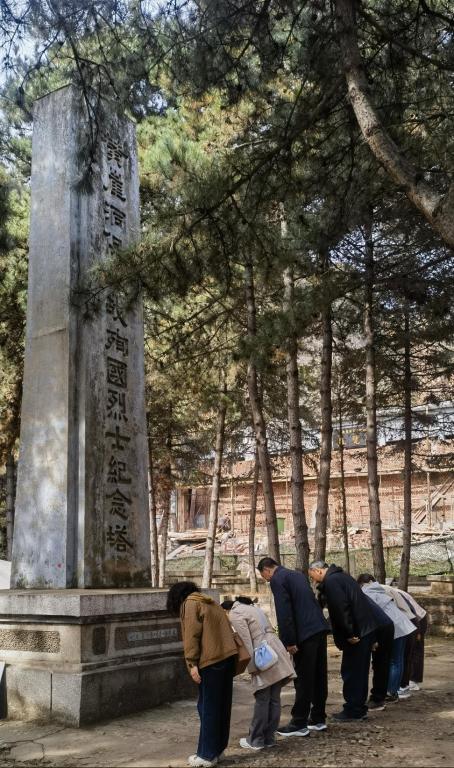 图为党员们向烈士们鞠躬