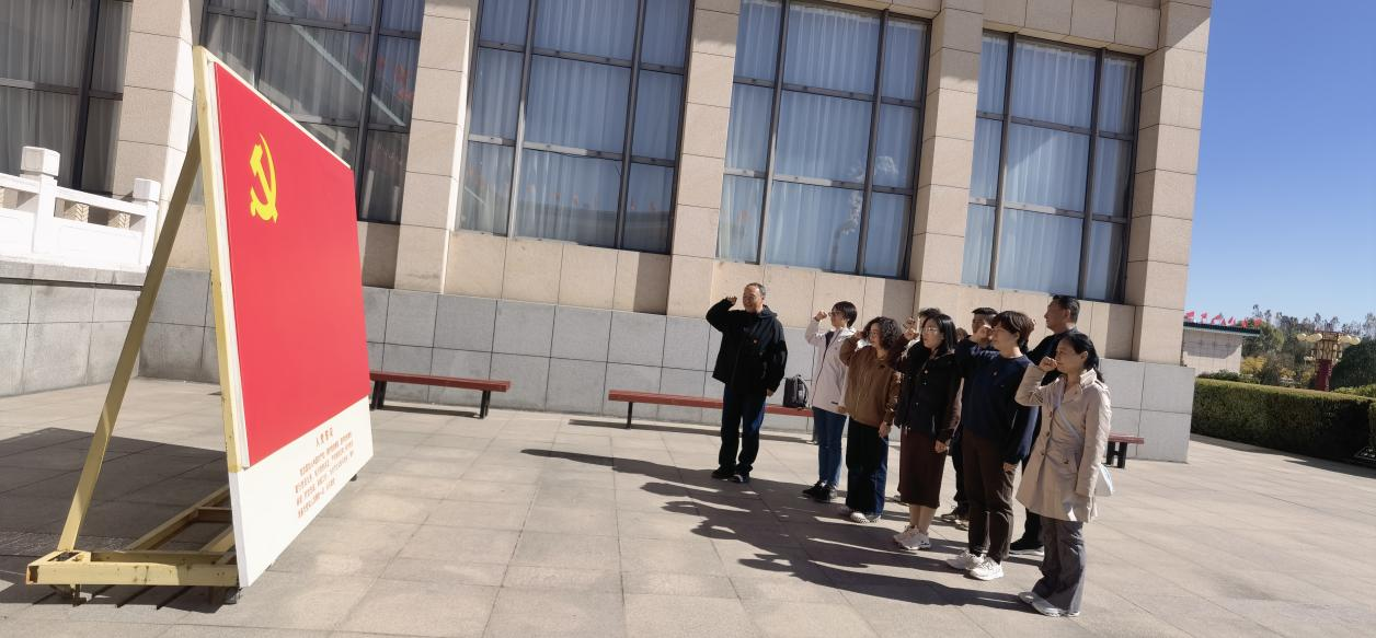 图为党员们在八路军太行纪念馆展前重温入党誓词