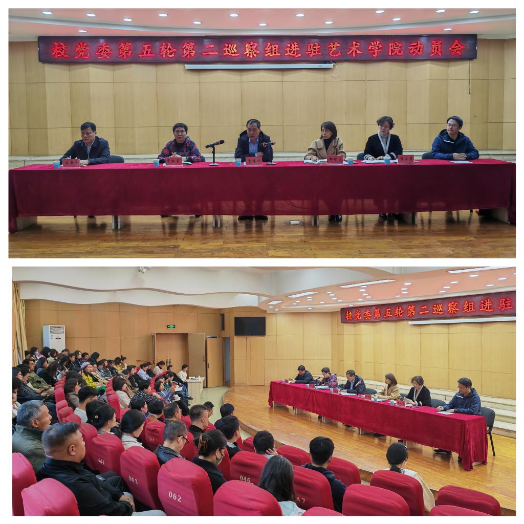 10月31日下午,根据校党委关于第五轮巡察工作的统一部署,中北大学党委第五轮第二巡察组巡察艺术学院动员会在12号楼一层东厅顺利召开。巡察工作领导小组常务副组长、校纪委书记贾维河,巡察办主任、校纪委副书记郑智贞,第二巡察组组长雷丽蓉及全体成员、审计部部长李京出席会议。学院领导班子成员、全体教工、学生代表参加了本次动员会,会议由巡察办主任郑智贞主持。