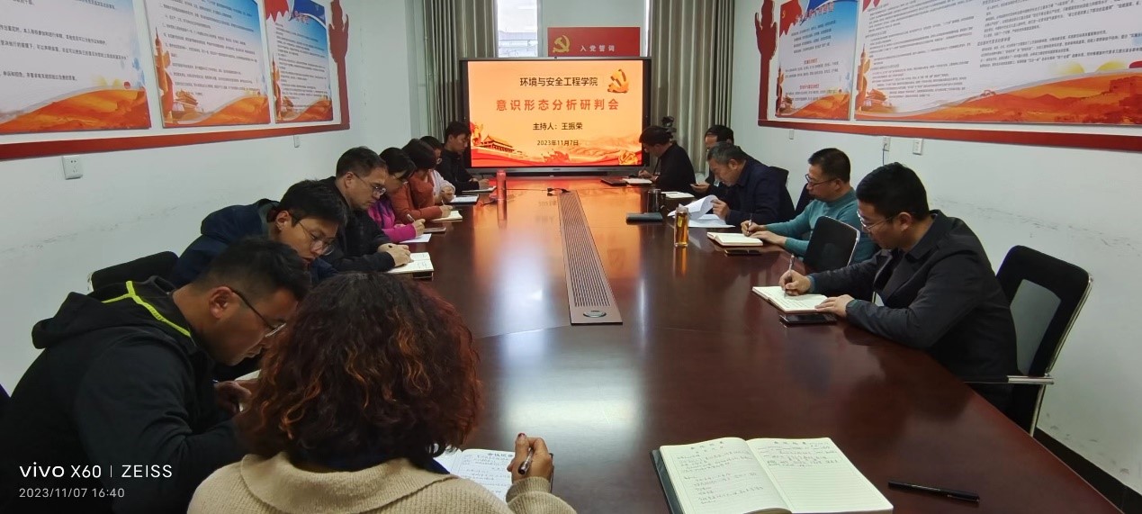2023年11月7日下午,环境与安全工程学院在科学楼C座614会议室召开了意识形态工作分析研判会,学院党委书记、副书记、各党支部书记和辅导员参加了会议。会议由院党委书记王振荣同志主持。