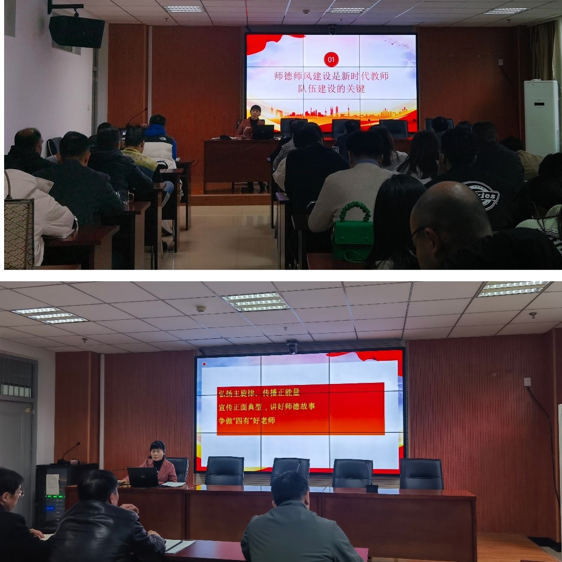 杜书记以“学思悟透二十大精神,做为党育人时代先锋”为题组织全院教师进行了师德师风专项教育。她从师德师风建设是新时代教师队伍建设的关键入手,分别从师德师风是评价教师队伍素质的第一标准,新时代师德师风建设亟待加强理论与实践创新,新时代师德师风建设亟待加强理论与实践创新三点进行阐述。杜书记引用习近平在纪念马克思诞辰200周年大会上的讲话,希望大家立足中华文明五千年“德行天下”的优良传统,汲取中国教师“以德为先”的历史经验,开辟一条以中华文化涵养师德的师德师风建设新路径。会上,还学习了《新时代高校教师职业行为十项准则》,杜书记对全院教师发出号召,在之后的工作中,要坚持弘扬主旋律,传播正能量,宣传正面典型,讲好师德故事,争做“四有”好老师,坚守为党育人、为国育才的初心,不断提高教育管理能力和教书育人水平。