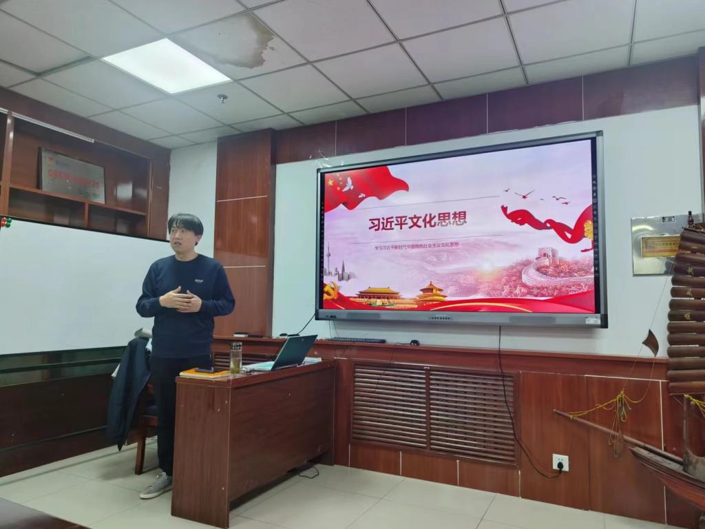 最后,计算机科学与技术学院党委副书记杨晓东老师带领大家共同学习了《习近平文化思想内涵》。2023年10月7日至8日,全国宣传思想文化工作会议在北京召开,会议最重要的成果就是首次提出了习近平文化思想。深入学习领会习近平文化思想,是全党尤其是全国宣传思想文化战线的一项重要政治任务。杨晓东书记就习近平文化思想学习要点、理论贡献、重大意义等方面与大家共同进行了深入学习。以新媒体平台事例和大家身边的案例为引,学习了习近平新时代中国特色社会主义思想关于坚定文化自信的重要论述,引起了大家广泛的共鸣。