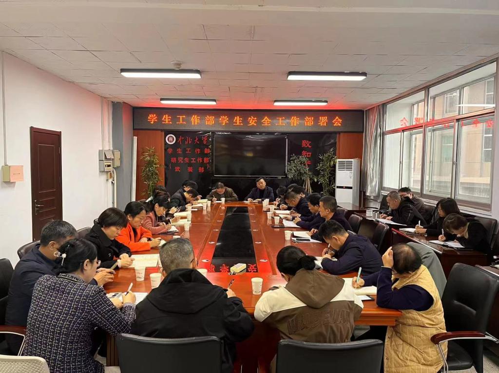 为全面加强学校学生安全工作,维护安定和谐的校园学习生活环境,11月20日,学生工作部在德怀楼211会议室组织召开学生安全工作部署会,校党委副书记雷锋斌出席会议并讲话,学生工作部、校团委负责人、各学院党委副书记参加会议,学生工作部部长李俊华主持会议。