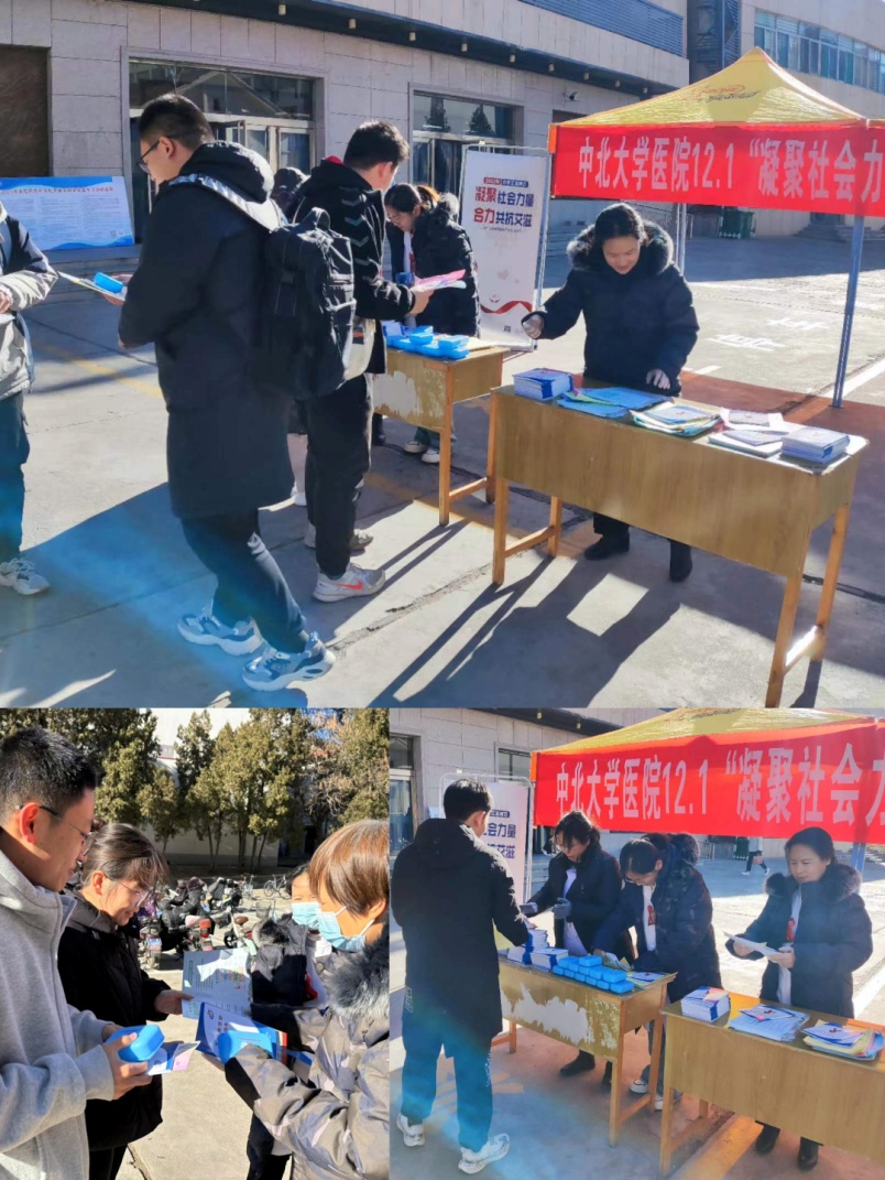 2023年12月1日是第36个“世界艾滋病日”,今年的主题是“凝聚社会力量、合力共抗艾滋”。为让在校大学生充分认识艾滋病的危害,了解艾滋病的传播途径和预防措施,增强自我保护意识,11月30日中午,校医院党支部组织医务人员在文瀛食堂广场开展了艾滋病防治知识宣讲宣教活动。