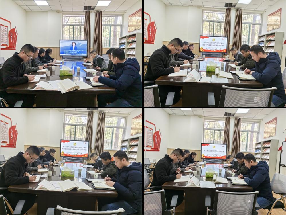 参会人员集中观看了吕梁市离石区永聚煤矿办公楼“11.16”重大火灾事故的警示教育片,院党委副书记任雁同志领学《习近平总书记关于安全生产重要论述和重要指示精神》和《习近平总书记对宣传思想文化工作的重要指示和全国宣传文化工作会议精神》;科研副院长胡胜亮同志领学《求是》杂志发表的文章《推进生态文明建设需要处理好几个重大关系》。