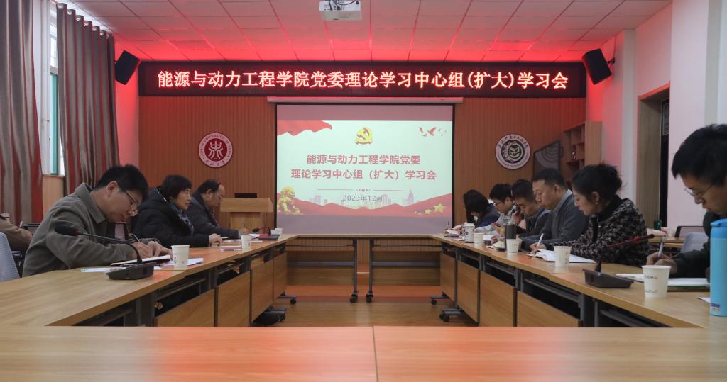 2023年12月14日上午,能源与动力工程学院党委在学院115会议室召开理论学习中心组(扩大)学习会。院党委书记顾宁同志主持会议,学院领导、党委委员、各党支部书记参加会议,校党委常委、统战部部长夏瑞丽、马克思主义学院党委书记段义权、副书记李庆乐同志列席旁听会议。