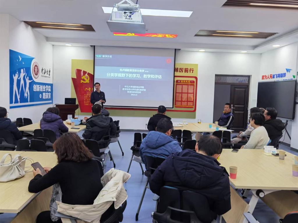 2023年12月26日下午,创新创业学院在学院A座406路演室举行了“知新”读书会教学沙龙。本次沙龙由薄瑞峰老师主持,马春生老师领读,院长王黎明及学院40余名教师参加了活动。