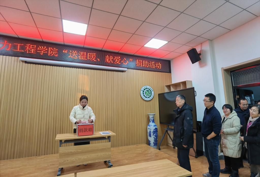 自接到通知以来,能源与动力工程学院党委高度重视,广泛发动,于12月27日上午在院楼115会议室开展了“送温暖、献爱心”现场捐助活动。此次活动坚持自觉、自愿原则,党员模范和领导干部率先垂范,全体教师积极响应、踊跃参与,纷纷将饱含爱心的善款投入捐款箱中,以实际行动贡献能动力量、展现能动担当。