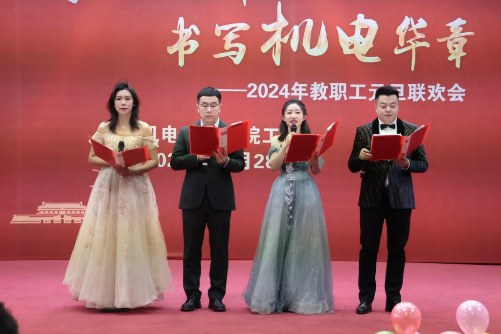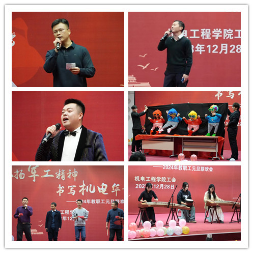 本次联欢会涵盖了朗诵、话剧、歌舞、相声、乐器表演等节目类型。开场一段柔美的《云之南》古筝表演之后,学院领导班子献上了《同心同德 同心同向 同心同行 共建机电》的诗朗诵,回顾了学院一年来取得的成绩及努力的方向,表达了学院领导班子团结一致,携手奋进新征程,共建一流机电的决心。