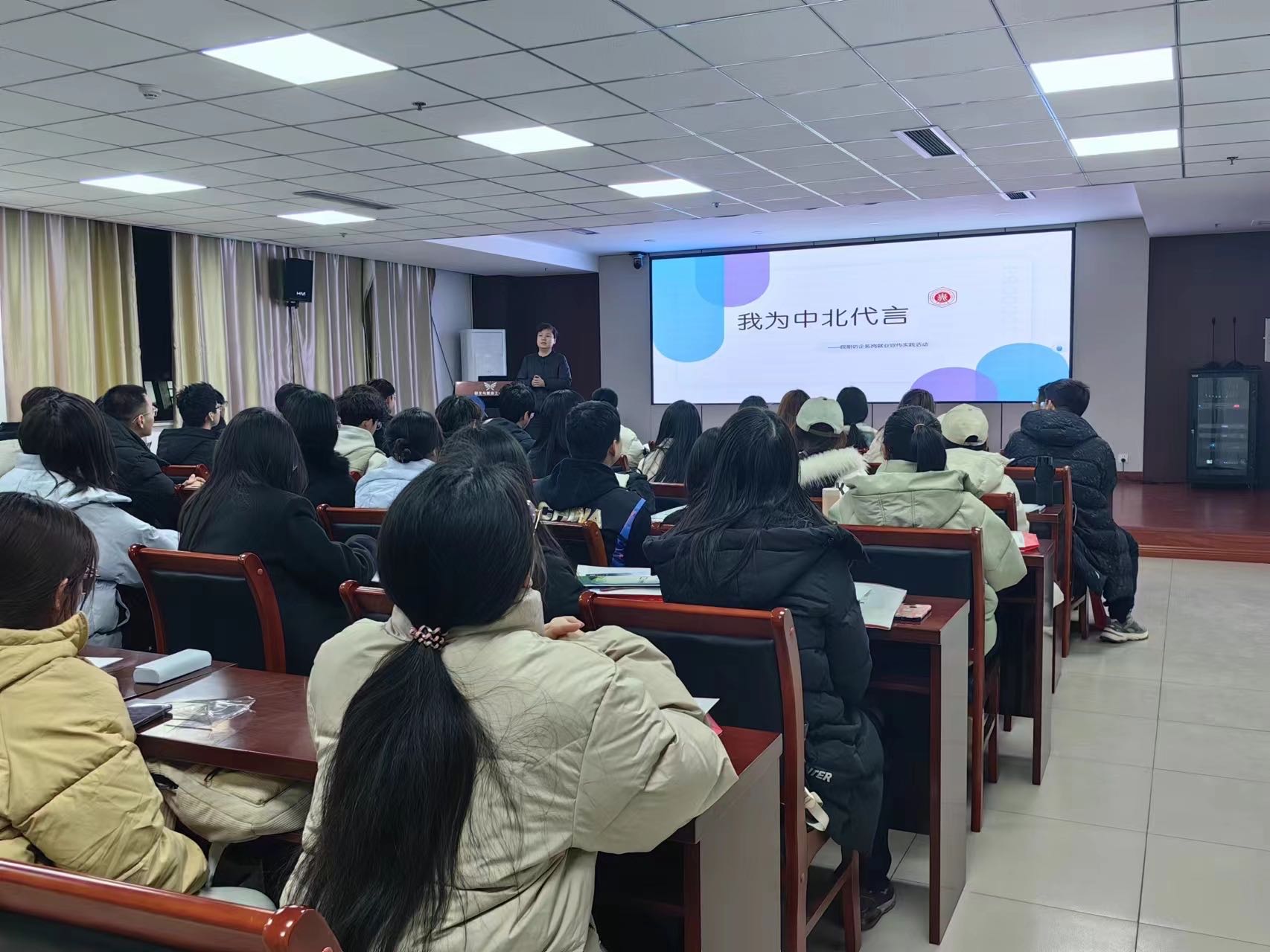 为充分展示中北大学风采,进一步提升我校在用人单位中的知名度和影响力,加深用人单位对我校的认可,同时提升学生就业适应力,招生与就业工作部于近日组织开展“我为中北就业代言”假期访企拓岗就业宣传实践活动,并在全校师生中招募中北大学“就业宣传大使”。1月11日,近百名“就业宣传大使”在11号楼七层西厅举行实践活动培训及资料发放仪式。