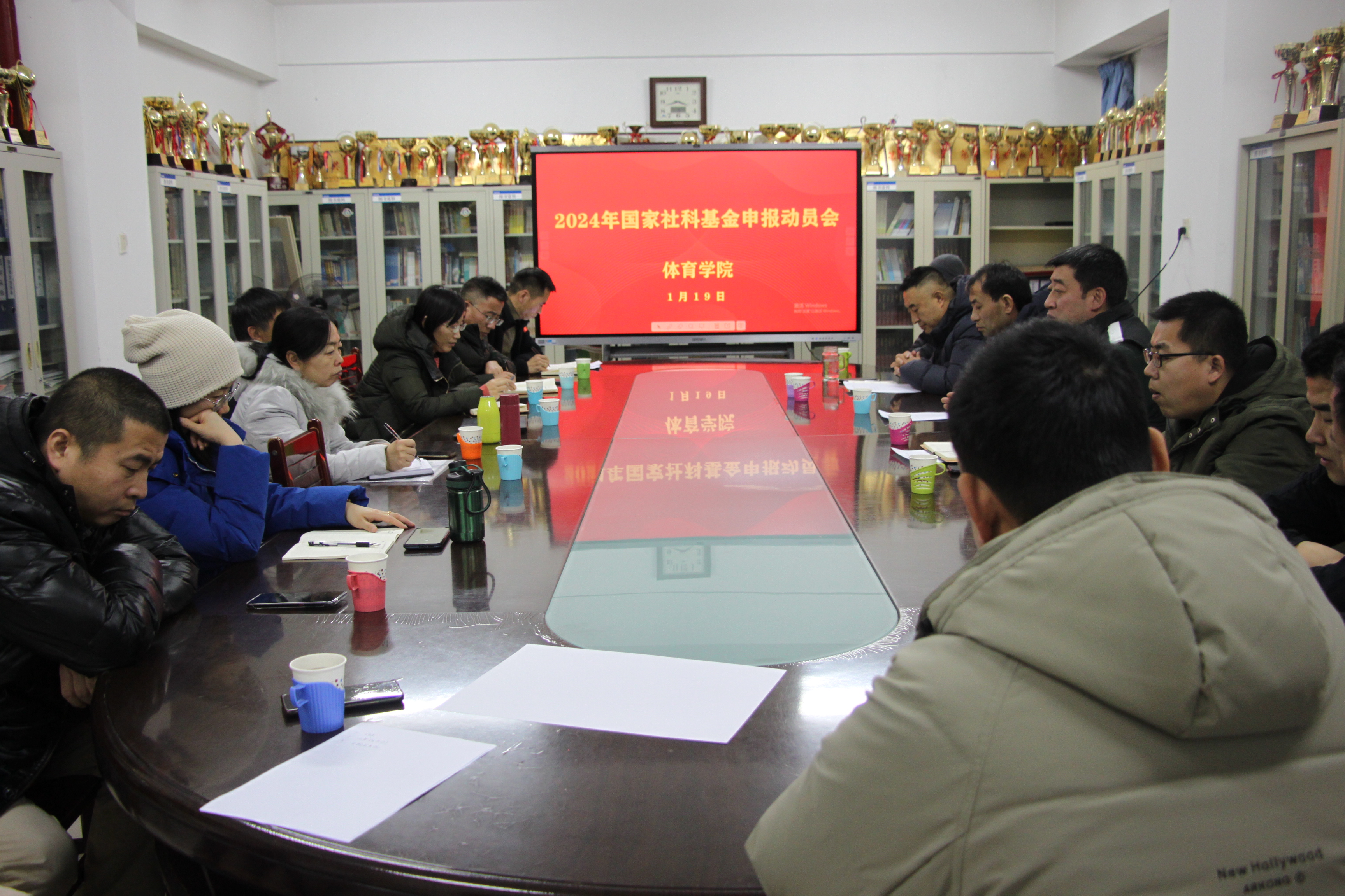 1月19日下午,体育学院在院楼二层会议室召开2024年国家社科基金申报动员会。学院党委书记曹电康、院长吴剑,以及副教授以上职称和具有博士学位的教师参与此次会议。会议由副院长王晓刚主持。