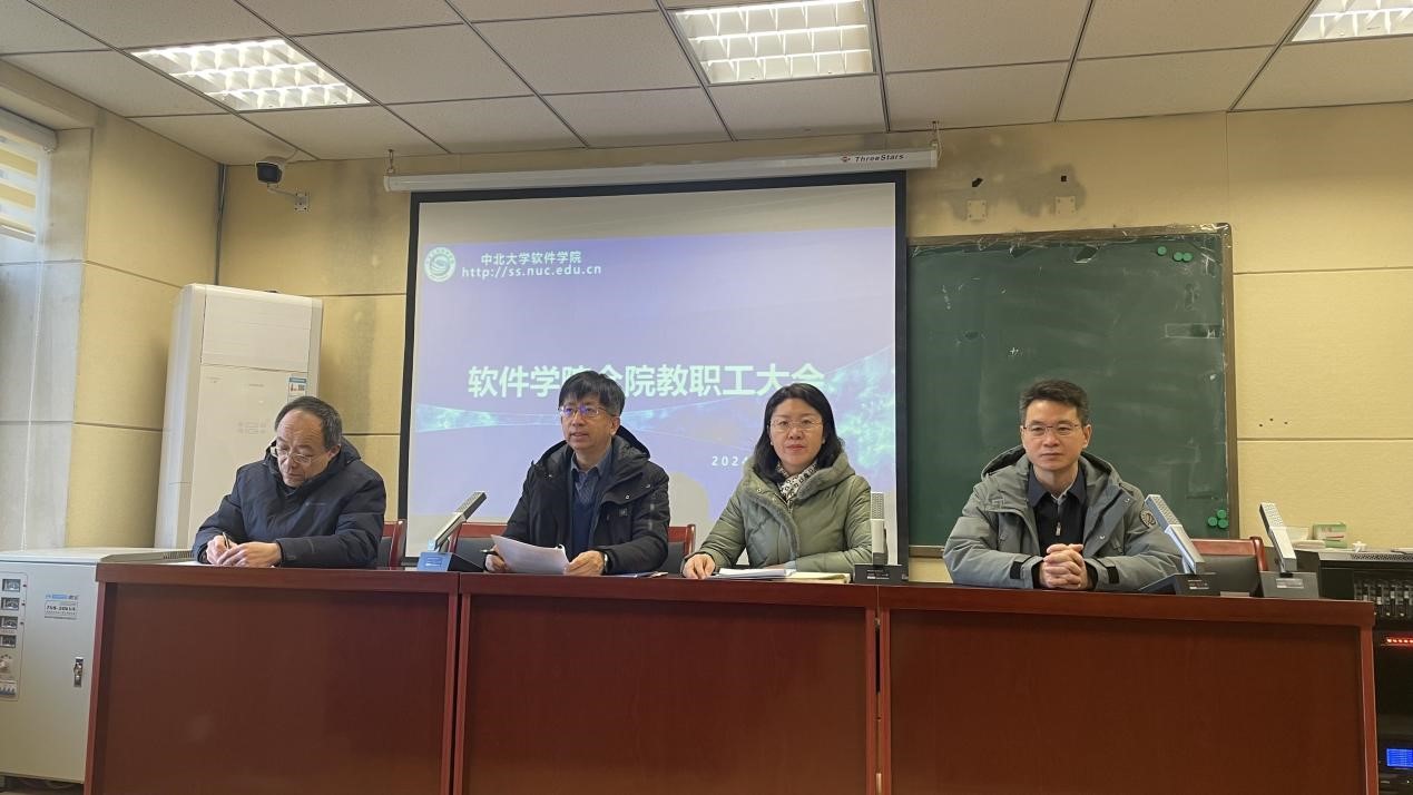 1月21日上午,软件学院在学院122会议室召开了全院教职工大会。全体教职工参加了会议,院党委书记常旭青主持会议。