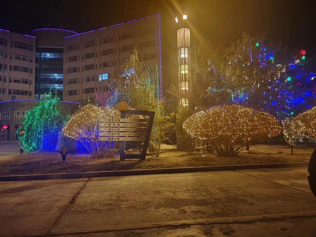 今年校园亮化工作遵循“绿色节能、循环使用”的环保理念,运用树干缠绕LED灯带,路灯悬挂大红灯笼等方式,对学校主校门、德怀楼前广场两侧、中央大道等主要路段和区域进行全面的亮化装扮。