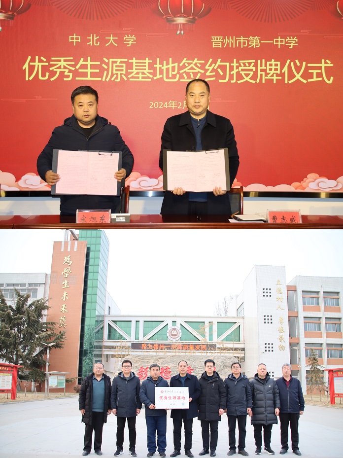 仪式开始前,晋州市第一中学曹志威书记代表学校对我校的到来表示热烈的欢迎和衷心的感谢,向我校一行介绍了晋州市第一中学的发展历史、办学理念、办学特色、师资队伍建设以及学生培养情况,期望能以中北大学“优秀生源基地”挂牌为契机,加强两校培养拔尖创新人才的合作,为国家和民族输送更多的优质人才,为教育强国建设和经济社会的高质量发展贡献力量。