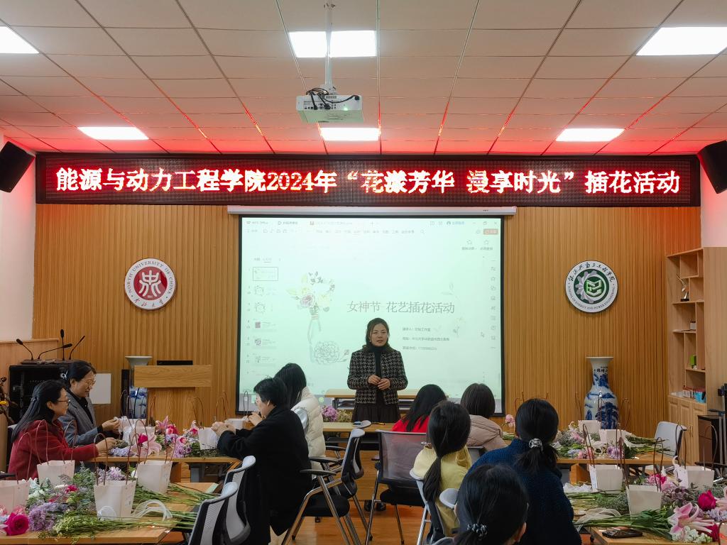 阳春三月,桃李芬芳,在这春意盎然、万物复苏的季节里,能源与动力工程学院工会在院楼115会议室开展“花样芳华,漫享时光”主题插花活动,共同庆祝“三八”妇女节。
